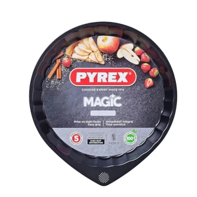 Pyrex Magic Metal Flan Pan Non Stick Coating Easy Grip 30cm Black (Pack of 2)
