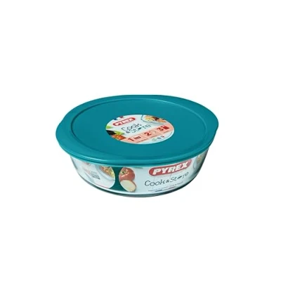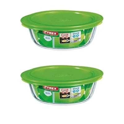 Pyrex Cook&Store Round with Lid, model number 208P000, a versatile and essential addition to any kitchen. Convenient Size: This set includes a square dish with a 2.3-liter capacity, perfect for various cooking and storage needs. High Temperature Resistance: The Pyrex glass material can withstand a maximum temperature of 300°C (572°F), ensuring safe and efficient cooking and baking experiences. Thermal Shock Endurance: With the ability to handle thermal shock up to 220°C (428°F), these dishes can go from hot to cold environments without breaking, providing reliable performance. BPA-free Lid for Secure Storage: Each dish comes with a BPA-free green lid, offering a secure and healthy way to store food and leftovers. However, the lids should not be used in the microwave or oven to prevent damage., Weight: 1.4770971554 Pounds, Manufacturer: PYREX