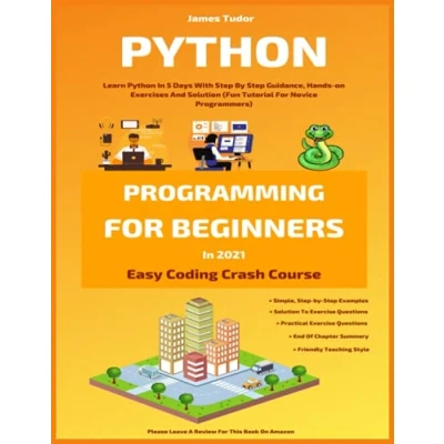 Python Programming For Beginners In 2021: Learn 5 Days With Step By Guidance, Hands on Exercises And Solution (Fun Tutorial Novice Programmers) (Easy Coding Crash Course)