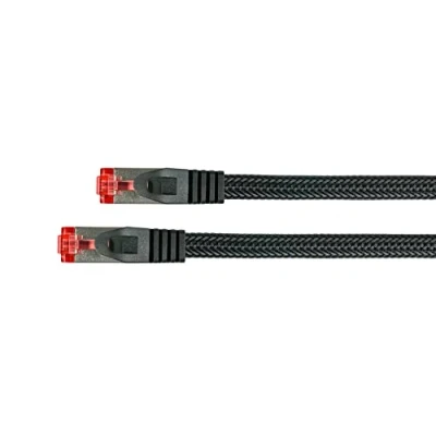 Cat.6 patch cable from Python Series with effective latch protection and nylon braided jacket is Gigabit capable (10/100/1000-Base-T Ethernet networks) and therefore suitable for all network connections Easily connect your PC, TV, notebook, game console, patch panels, switch, router, modems and many other network-enabled devices to the Internet or your network High-quality cable construction made of 99.9% oxygen-free copper (OFC) allows increased signal transmission and higher breaking strength of the cable. The locking nose protection RNS prevents the detent nose from bending away on the patch cable connector. So broken latches are a thing of the past! Ethernet cable with RJ45 connectors attached on both sides, gold-plated contact surfaces and a 1:1 assignment according to EIA/TIA-568B The S/FTP shielding (PiMF) of the cable ensures interference-free and consistently high signal transmission