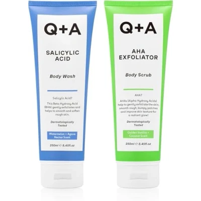 Q+A AHA Body Scrub and Salycylic Body Wash