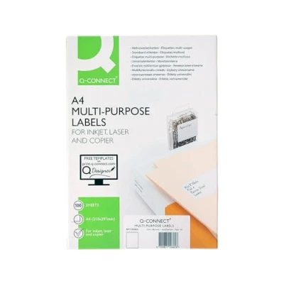 Q Connect 210 x 297 mm A4 Multi Purpose Labels (Pack of 100 Sheets)