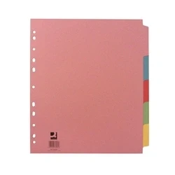 5-Part extra wide subject dividers. Ideal for office and home filing. Multicoloured for easy colour-coded organisation. Tabs left blank for customisation options. Fits in any standard punched file or binder. Extra wide for increased visibility.