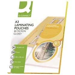 Q Connect A3 Laminating Pouches 160 Micron Gloss Pk 100 KF04122