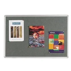 Dimensions: 1800x1200mm. Top quality felt, will accept pins and velcro. Aluminium frame with plastic corner caps. Supplied with a fixing kit for mounting. Colour: Grey.
