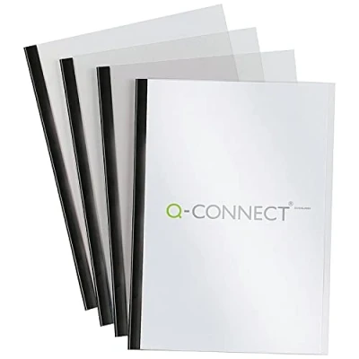 These Q-Connect Slide Binder and Cover Sets help you create simple, inexpensive and professional looking bound reports and presentations, The 5 mm binders come with a clear front cover, which protects contents and presents your documents to their best advantage, This pack contains 100 black A4 slide binders with clear covers Slide binder and cover set Clear cover page for protection More economical than other binding methods Maximum capacity: 5 mm Perfect for reports and presentations Spine colour: Black Size: A4 (210x297 mm) 150 micron thick covers Pack of 100 binder/cover sets