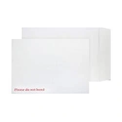 Pocket envelopes printed with 'Please do not bend'. Heavyweight 120gsm paper. Peel and seal closure. C4 (324 x 229mm) board back envelopes. Colour: white. Pack of 125.
