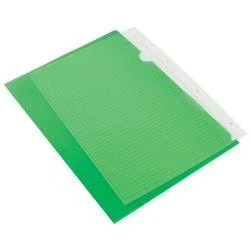 A4 cut flush folder. 120 micron. Open top and side with an easy access thumb cut out. Ideal for filing unpunched A4 documents. Size: A4. Colour: green. Pack of 100.