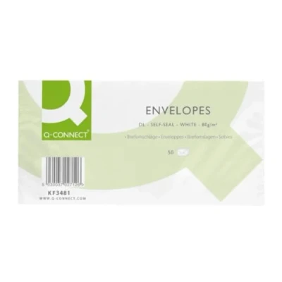Q Connect DL Envelopes Plain Wallet Self Seal 80gsm White 50's (Pack of 20) KF02712