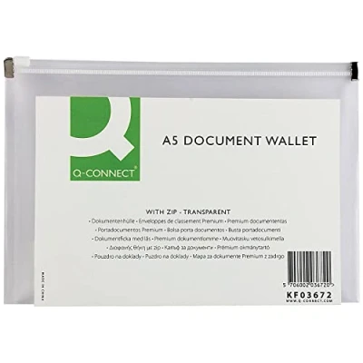 Q Connect Document Zip Wallet A5 Transparent (Pack of 10) Ref KF03672