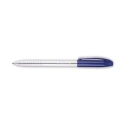 Ballpoint pen for everyday use. Medium tip for 0.5mm line width. Secure cap. Barrel colour: Clear. Ink colour: Blue. Pack of 20.