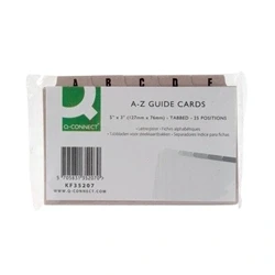 For use with Q Connect Record Cards. Tabbed indexing. Can be written on to further indexing system. Create an alphabetized archive. 25 tabs with A-Z index. Buff coloured to separate them from white record cards. Size: 5x3 inches.