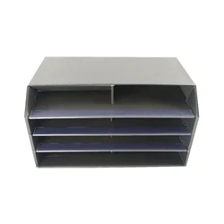 8 shelf mail sorter. Ideal for office, post room and home use. Organise by recipient or purpose. Corrugated board. Clear perspex edge strips. Dimensions: 495x315x280mm. Finish: Black.