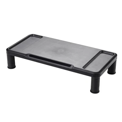 Q-connect support for monitor adjustable in height 555x265x112mm Q- Connect plastic monitor stand extra wide with 2 side compartments, adjustable to 3 heights (6,2/8,2/11,2cm) has a front slot to hold your phone/tablet or pens Surface dimensions incl the 2 compartments: 55,5 x 26,5cm Colour - Black Can carry max. 15kg