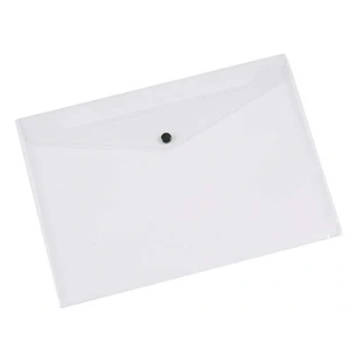 Durable, transparent polypropylene document folders Holds up to 150 sheets Press stud closure Size: A5 Colour: clear Pack of 12