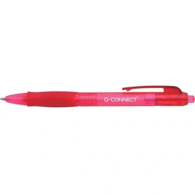 Retractable ballpoint pen. Soft rubber grip for comfort and control. Medium tip writes a 0.5mm line width. Retractable mechanism for convenience. Barrel colour matches ink colour. Ink colour: Red. Pack of 10.