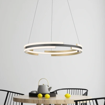 Ring-shaped Q-Beluga LED pendant luminaire - controlled by remote control or smart via ZigBeeThe Q-Beluga LED pendant luminaire enriches modernly furnished interiors with adaptable light and contemporary design. Below the round, anthracite-coloured canopy, the ring-shaped body is attached to three cables. Sections in anthracite, brass and LED areas are combined here, with light coming out on all sides.A suitable Q remote control is already included in the scope of delivery for switching, dimming and regulating the colour temperature. In addition to free adjustment of the light, it also offers pre-configured options so that the perfect lighting is conveniently available for almost any situation. Alternatively, Q-Beluga can be integrated into ZigBee-based smart home systems via radio (bridge required) to control it via app or voice command, depending on the configuration.Technical data/compatibility:- dimmable- colour temperature of the light adjustable from warm white to universal white- pre-configured scenes- memory function- switching of up to 20 individual Q-lights or Q-lights to max. 3 groups with only one Q-remote control (enclosed)- ZigBee-capable- voice control via devices with integrated ZigBee hub (e.g. Echo 4th gen, Echo Studio, Echo Show 10 3rd gen) directly possible- When integrated into a ZigBee-based smart home system, can also be conveniently controlled via app or voice commandNote: A bridge is required for connection to a smart home system or app control; this is not part of the scope of delivery