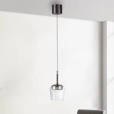 Stylish Q-Kon LED pendant light with glass lampshade and metal detail - smart and controllable by remote control The Q-Kon LED pendant light is both an attractive and functional addition to modern living rooms and lounges. The lampshade consists of a curved transparent glass that tapers at the bottom and an aluminium body with a coloured metallic finish on the inside. The downward-emitting LED module provides direct table or area lighting. Thanks to Comfort Lift, the height of the pendant can be adjusted manually at any time, and a suitable Q remote control is included for switching, dimming and controlling the colour temperature. In addition to free adjustment of the light, this also offers preconfigured options so that the perfect lighting is conveniently available for almost any situation. Alternatively, the Q-Kon pendant light can be wirelessly integrated into ZigBee-based smart home systems (bridge required) in order to control it via app or voice command, depending on the configuration. Technical data/compatibility: - dimmable - adjustable colour temperature of the light from warm white to cool white - pre-configured scenes - memory function - switching of up to 20 individual Q-Leuchten or Q-Bulbs to a maximum of 3 groups with just one Q remote control (included) - ZigBee-capable - voice control via devices with integrated ZigBee hub (e.g. Echo 4th Gen., Echo Studio, Echo Show 10 3rd Gen) - Can also be conveniently controlled via app or voice command when integrated into a ZigBee-based smart home system Note: A bridge is required for connection to a smart home system or app control; this is not included in the scope of delivery.