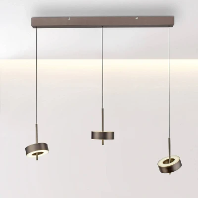 3-bulb LED pendant light Q-Rotate with adjustable lampshades - smart and controllable by remote control Functionally and visually, the Q-Rotate LED pendant light is in tune with the times. Three ring-shaped aluminium lampshades are each pivotably attached to a central rod and each houses an LED module. The light is emitted through satinised covers on the top and bottom of the rings. Thanks to Comfort Lift, the height of the pendant can be adjusted manually at any time, and a suitable Q remote control is included for switching, dimming and adjusting the colour temperature. In addition to free adjustment of the light, this also offers preconfigured options so that the perfect lighting is conveniently available for almost any situation. Alternatively, the Q-Rotate pendant light can be wirelessly integrated into ZigBee-based smart home systems (bridge required) in order to control it via app or voice command, depending on the configuration. Technical data/compatibility: - dimmable - adjustable colour temperature of the light from warm white to cool white - pre-configured scenes - memory function - switching of up to 20 individual Q-Leuchten or Q-Bulbs to a maximum of 3 groups with just one Q-Remote control (included) - ZigBee-capable - voice control via devices with integrated ZigBee hub (e.g. Echo 4th Gen., Echo Studio, Echo Show 10 3rd Gen) - Can also be conveniently controlled via app or voice command when integrated into a ZigBee-based smart home system Note: A bridge is required for connection to a smart home system or app control; this is not included in the scope of delivery.