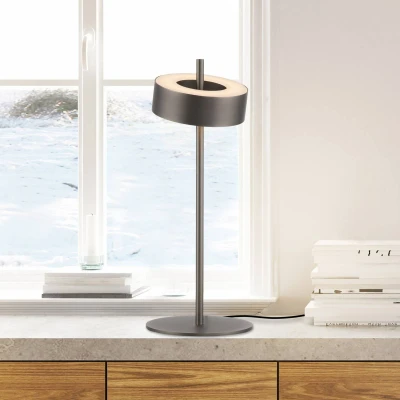 Modern Q-Rotate LED table lamp with tilting lampshade - smart and controllable by remote control The Q-Rotate LED table lamp is both functionally and visually in tune with the times. The LED module is located inside a ring-shaped aluminium lampshade, which is pivotably attached near the top of the slim, vertical frame rod. The light is emitted through satinised covers on the top and bottom of the ring, and a suitable Q remote control is included for switching, dimming and adjusting the colour temperature. In addition to free adjustment of the light, this also offers pre-configured options so that the perfect lighting is conveniently available for almost any situation. Alternatively, the Q-Rotate table lamp can be wirelessly integrated into ZigBee-based smart home systems (bridge required) in order to control it via app or voice command, depending on the configuration. Technical data/compatibility: - dimmable - colour temperature of the light adjustable from warm white to cool white - pre-configured scenes - memory function - switching of up to 20 individual Q-Leuchten or Q-Bulbs to max. 3 groups with just one Q-Remote control (included) - ZigBee-capable - voice control via devices with integrated ZigBee hub (e.g. Echo 4th Gen., Echo Studio, Echo Show 10 3rd Gen) - Can also be conveniently controlled via app or voice command when integrated into a ZigBee-based smart home system Note: A bridge is required for connection to a smart home system or app control; this is not included in the scope of delivery.