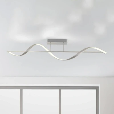 Modern Q-Swing spacer ceiling lamp with smart LEDs that can be controlled by remote controlWith its skilful design, which has an elegant, dynamic effect, as well as all-round radiant light, the Q-Swing LED ceiling lamp is a true highlight for modern furnishing concepts. A slender beam is attached to two rods below the rectangular canopy, around which the characteristic light element of the luminaire series spirals. The LEDs are integrated behind a satin cover on one side of the twisted element, so that light is emitted on all sides. A suitable Q remote control is already included in the scope of delivery for switching, dimming and controlling the colour temperature. In addition to free adjustment of the light, it also offers pre-configured options so that the perfect lighting is conveniently available for almost any situation. Alternatively, Q-Swing can be integrated into ZigBee-based smart home systems via radio (bridge required) to control it via app or voice command, depending on the configuration.Technical data/compatibility:- dimmable- colour temperature of the light adjustable from warm white to universal white- pre-configured scenes- memory function- switching of up to 20 individual Q-lights or Q-lights to max. 3 groups with only one Q-remote control (enclosed)- ZigBee-capable- voice control via devices with integrated ZigBee hub (e.g. Echo 4th gen, Echo Studio, Echo Show 10 3rd gen) directly possible- Can also be conveniently controlled via app or voice command when integrated into a ZigBee-based smart home systemNote: A bridge is required for connection to a smart home system or app control; this is not part of the scope of delivery