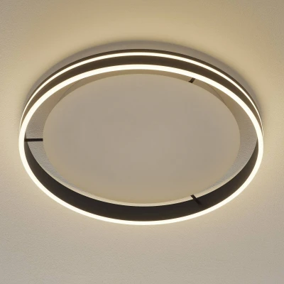 Round Q-Vito LED ceiling light with glowing rings The circular metal frame, which is fitted with two glowing rings orientated to the side and downwards, gives the LED ceiling light a modern look. This goes hand in hand with useful technical features, as the LEDs can not only be dimmed, but also adjusted in colour temperature from 2,700 to 5,000 K. This is possible directly with the included remote control - with which up to 20 Q lights can be paired simultaneously - or by voice command via Amazon Echo Plus or Echo Show (2nd generation). The ZigBee-compatible ceiling light can also be integrated into a compatible Smart Home system via a corresponding Bridge and then controlled with the appropriate App. Technical data/compatibility: - Dimmable - Colour temperature adjustable from warm white to universal white - Memory function - Switching of up to 20 individual Q-Lights or Q-Bulbs to max. 3 groups with just one Q remote control - ZigBee-capable - Can be controlled with the remote control - Voice control via Echo Plus and Echo Show (2nd gen) directly possible - Can also be conveniently controlled via App when integrated into a ZigBee-based Smart Home system Note: A Bridge is required for integration into a Smart Home system or App control; this is not included in the scope of delivery