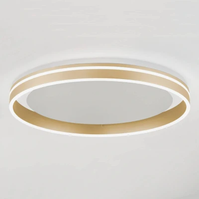 Including Q remote control - Q-Vito ring-shaped LED ceiling light The Q-Vito LED ceiling light has an elegant brass look and modern form, which is achieved primarily through the combination of the ring-shaped lampshade and the matt brass surface. The included remote control allows the light to be adjusted to suit the mood of the day, whether in terms of brightness or colour temperature. Hat you have decided on a light setting, you can save it thanks to the integrated memory function and quickly play it back when you switch it on again. Thanks to the innovative ZigBee standard, Q-Vito can also be connected to your own Smart-Home system and controlled via a mobile device using an App. Technical data/compatibility: - dimmable - adjustable colour temperature from warm white to universal white - memory function - can be controlled using the enclosed remote control - ZigBee-compatible - voice control with Echo Plus and Echo Show (2nd generation) directly possible. Generation) - Can also be conveniently controlled via App or voice command when integrated into a ZigBee-based Smart Home system Note: A Bridge is required for integration into a Smart Home system; this is not included in the scope of delivery.