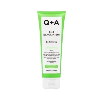 Q+A AHA Exfoliator Body Scrub (250ml), Exfoliating with and Lactic & Glycolic Acid, Smooths Rough Dry Skin, Brightens Hydrates, Vanilla Coconut Scent