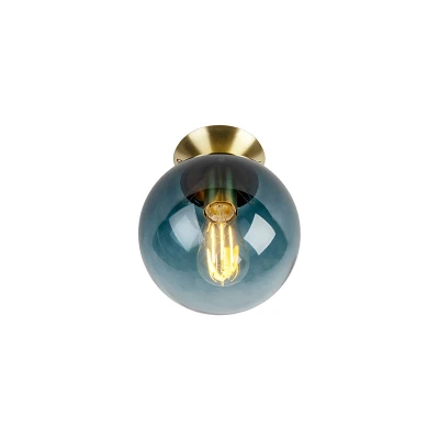 Qazqa Art Deco Ceiling Lamp I Flush Light 20cm Brass with Ocean Blue Glass Shade Pallon Suitable for LED E27 1 Living roo