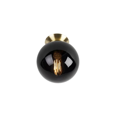 General description This Pallon ceiling light is a stunning blend of black glass and brass, creating a striking visual impact. Its elegant design makes it a perfect addition to various indoor spaces, including bedrooms, hallways, dining rooms, kitchens, and living rooms. Technical specifications Glass sphere diameter: 20 cm Glass sphere height: 23 cm Mounting plate diameter: 12 cm Bulb holder: E27 Maximum wattage: 1 x 25 W Voltage: 220V/230V Protection class: IP20 Dimmable: Yes (dimmer not included) Suitable for: Incandescent, Halogen, LED, Energy saving bulbs Usage This ceiling light serves as a mood lamp, enhancing the ambiance of any room. It is ideal for creating a cozy atmosphere in your home. Other information