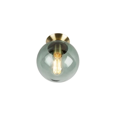 General description The QAZQA Art Deco Ceiling Light Brass with Green Glass - Pallon is a stunning lighting fixture that combines a luxurious character with a unique design. The green glass globe, made of ice blue/green colored glass, beautifully complements the brass finish, making it a striking addition to any interior. This ceiling light is perfect for enhancing the ambiance in living rooms, bedrooms, children's rooms, or hallways. Technical specifications Height: 23 cm Diameter: 20 cm Bulb holder: E27 Max wattage: 1 x 25 W Voltage: 220V/230V Protection class: IP20 Dimmable: Yes (dimmer not included) Lightsource: Exclusive Installation Requires installation by a qualified electrician. Ensure proper connection to the 220V/230V power supply. Usage Suitable for indoor use in various spaces including dining rooms, hallways, kitchens, bedrooms, and living rooms. For optimal lighting effects, use a decorative light source with a golden filament. Other information