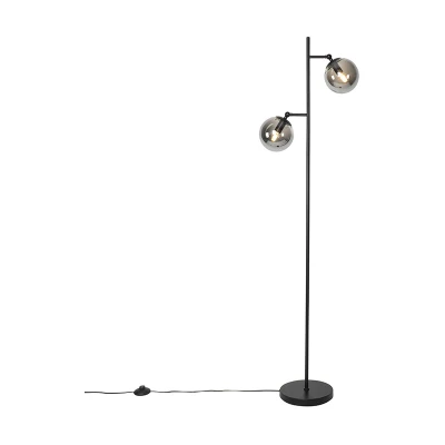 Qazqa Art Deco Floor lamp Black with Smoke Glass 2 Light Pallon Suitable for LED E14 Steel Living Room I Bedroom