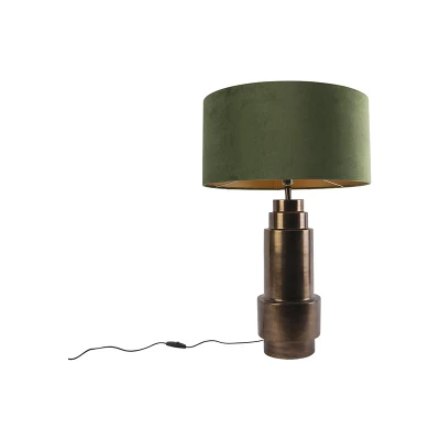 Qazqa Art Deco Table lamp I Light Bronze Velor Shade Green with Gold 50cm Bruut Suitable for LED E27 1 Steel Living Room Bedroom