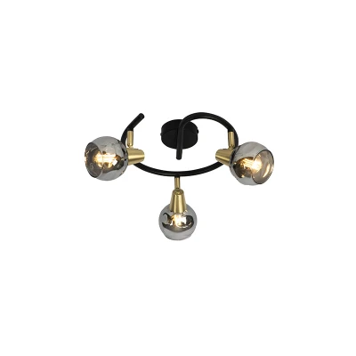 General description The QAZQA Black Ceiling Light 44.5 cm with Smoke Glass 3-Light - Vidro is a stunning addition to any interior, featuring a stylish design that combines steel with a gold finish and elegant smoked glass shades. This lamp not only enhances the ambiance of your space but also serves as a striking style statement, making it suitable for various rooms including the dining room, office, kitchen, bedroom, store, and living room. Technical specifications Diameter: 44.5 cm Height: 19 cm Mounting plate diameter: 8 cm Bulb holder: E14 Maximum wattage: 3 x 25 W Voltage: 220V/230V Protection class: IP20 Dimmable: Yes (dimmer not included) Lightsource: Exclusive Compatibility and accessories Requires three light sources with E14 fitting (max 25W) Usage The smoke glass effect of this ceiling light creates a warm atmosphere, and it can be connected to a dimmer for added ambiance. Ideal for various indoor settings, it enhances the overall design of your space. Other information