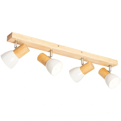 General description The QAZQA Ceiling Spotlight Wood with White Adjustable 4-Light - Thorin adds a touch of style to your country or rustic interior. Made of wood and steel, this lamp features a white finish with natural accents and includes four adjustable light points, making it a striking addition to any room. Technical specifications Dimensions: 17.1 cm high, 73.6 cm long, 8 cm wide Bulb holder: E14 Maximum wattage: 4 x 40 W Voltage: 220V/230V Protection class: IP20 Dimmable: Yes (dimmer not included) Lightsource: Exclusive Compatibility and accessories Requires E14 fitting light sources (40W) to be ordered separately Usage Suitable for indoor lighting in various spaces including dining rooms, kitchens, offices, hallways, bedrooms, stores, and living rooms Other information