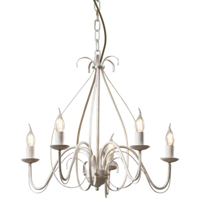 Qazqa Chandelier Aged White Giuseppe 5 Country Suitable for LED E14 Light Steel Chandeliers Living Room I Kitchen