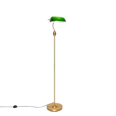 Qazqa Classic Banker Floor lamp Bronze with Green Glass I Antique Suitable for LED E27 1 Light Steel Living Room Bedroom