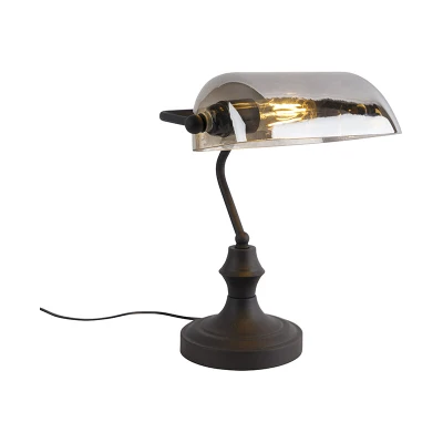 Qazqa Classic Notary lamp Black with Smoked Mirror Glass Banker I Antique Suitable for LED E27 1 Light Table Living Room Bedroom