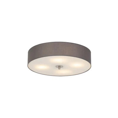 Qazqa Country Ceiling Lamp I Flush Light Gray 50 cm Drum Modern Suitable for LED E27 4 Fabric Living Room Kitchen Bedroom