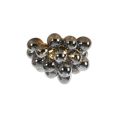 General description What a design winner, this Uvas! An eye-catcher that will brighten up any room in the house, it can steal the show in the living room or bedroom. This ceiling light is also a feast for the eyes in the office. The combination of the black cord and the six smoke glass light points gives it a super Art Deco look. The ultimate investment piece, complete your Art Deco and design interior! Technical specifications Diameter: 50 cm Height: 32 cm Mounting plate diameter: 15 cm Mounting plate height: 12 cm Bulb holder: G9 Max power: 6 x 28 W Voltage: 230 V Connecting voltage: 220V/230V Protection class: IP20 Dimmable: Yes (dimmer not included) Lightsource: Exclusive Compatibility and accessories Requires 6 G9 light sources (max. 28W), which are not included. Usage Suitable for indoor spaces such as dining rooms, offices, kitchens, bedrooms, stores/showrooms, and living rooms. Other information