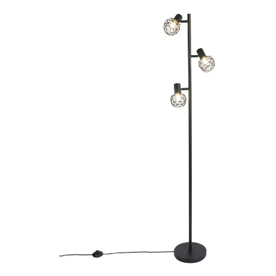 General description A striking floor lamp for your home, the QAZQA Design Floor Lamp Black 3-Light Adjustable - Mesh features a timeless black fixture with unique open shades. This lamp adds style to your space, even when the lights are off, making it an excellent addition to any room, including the bedroom or living room. Technical specifications Height: 150 cm Base diameter: 21 cm Cable length: 250 cm Bulb holder: E14 Max power: 3 x 40 W Voltage: 220V/230V Protection class: IP20 Dimmable: Yes, with external dimmer (not included) Suitable for: Halogen, Incandescent, LED, Energy saving Usage The spotlights are individually rotatable and adjustable, allowing you to direct the light where you need it, making it very handy for reading or creating ambiance in your space. Other information