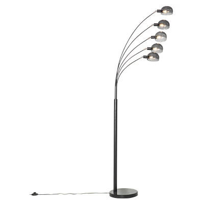 Qazqa Design Floor lamp Black with Smoke Glass 5 Light Sixties Marmo Suitable for LED E14 Steel Living Room I Bedroom