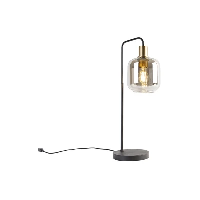 Qazqa Design Table lamp I Light Black with Gold and Smoke Glass Zuzanna Suitable for LED E27 1 Living Room Bedroom