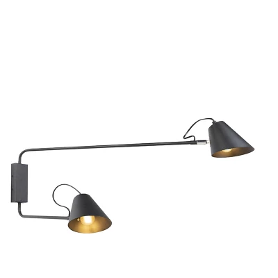 Qazqa Design Wall Lamp I Light Black 2 Adjustable Lune Retro Suitable for LED E27 Steel Living Room Kitchen Bedroom