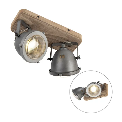 Qazqa Industrial Smart Spotlight Ceiling Gray with Wood incl. 2 WiFi GU10 Emado LED Way Light Steel Surface Mounted spotway Suitable for Living Room I Kitchen