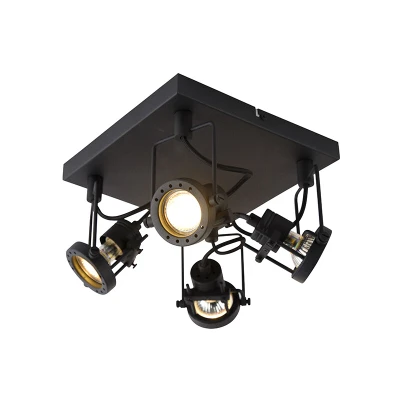 General description QAZQA Industrial spot black 4-light - Suplux is a stylish lighting solution that fits perfectly in industrial and modern interiors. This square black steel spotlight features four light points, allowing you to create a unique ambiance in any room. Technical specifications Height: 15.6 cm Length: 24 cm Width: 24 cm Mounting plate dimensions: 2.5 cm high, 24 cm long, 24 cm wide Shade diameter: 7 cm Shade height: 11 cm Bulb holder: GU10 Maximum wattage: 4 x 50 W Voltage: 220V/230V Protection class: IP20 Dimmable: Yes (dimmer not included) Light source: Excluded Compatibility and accessories Compatible with halogen and LED bulbs Requires four GU10 light bulbs (not included) Usage This spotlight is ideal for various living spaces, including: Indoor lights Dining room Office / Work area Kitchen Bedroom Store / Showroom Living room Other information