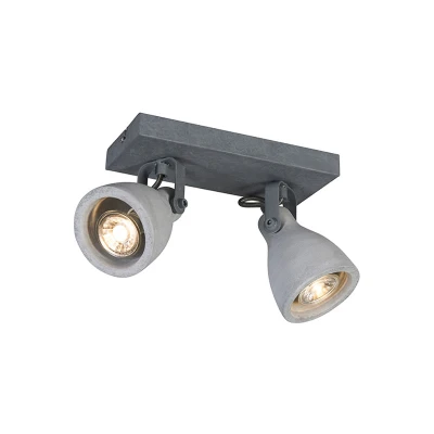 General description This rock-solid design will quickly become a fixture in your interior, enriching your style. The QAZQA Industrial Spotlight Grey Concrete 2-Light - Creto features a distinctive concrete design that adds a modern touch to any space. This sturdy spotlight is dimmable with an external dimmer (dimmer not included), allowing you to create the perfect atmosphere. Technical specifications Dimensions: 18 cm high, 23 cm long, 12 cm wide Mounting plate dimensions: 3 cm high, 23 cm long, 10 cm wide Bulb holder: GU10 Max power: 2 x 35 W Voltage: 220V/230V Protection class: IP20 Suitable for: Halogen, LED Lightsource: Exclusive Dimmable: Yes (dimmer not included) Without cord and plug Compatibility and accessories Compatible with GU10 light sources (max. 35W) Usage Suitable for indoor lighting in various spaces such as dining rooms, hallways, kitchens, bedrooms, and living rooms. Other information