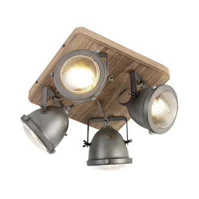 QAZQA Industrial spotlight steel with wood tiltable 4-light - Emado Video A sturdy spotlight, ideal for an industrial interior! The combination of the burnt steel and the wooden mounting plate gives this lamp an industrial look. Looks absolutely great in the hall or in the living room. The four spotlights can be tilted so they are perfect for bringing light to dark corners in your home! He has a total height of 18 cm, the wooden mounting plate is 27 cm long and wide. The spot has a diameter of 11.5 cm. The lamp has four GU10 fittings and is supplied without light sources, so make sure to order these separately (max. 25 watts each). The Emado surface-mounted spotlight is dimmable with an external dimmer (dimmer not included). Finish your interior with this Emado! Bulb holder: GU10 . Max 4 x 25 W, 230 V Suitable for: Halogen, Led Connecting voltage: 220V/230V Protection class: IP20 Dimmable, dimmer not included,No, without cord and plug Lightsource: Exclusive The QAZQA Industrial