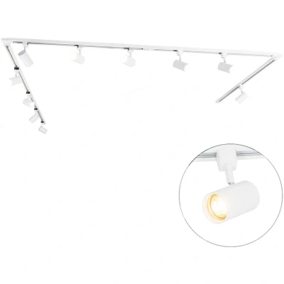 General description The QAZQA Modern Track Lighting with 10 Spotlights in White is an ideal choice for modern interiors. This stylish track lighting features 10 adjustable spotlights, allowing you to create the perfect ambiance in any room. Technical specifications Material: Steel Color: White Bulb holder: GU10 Maximum wattage: 10 x 50 W Voltage: 220V/230V Protection class: IP20 Dimmable: Yes (dimmer not included) Lightsource: Exclusive Compatibility and accessories Requires GU10 light sources (not included) Installation Track consists of 5 pieces of 1 meter each Includes coupling pieces and 2 corner pieces for easy connection Usage This track lighting is suitable for various living spaces, including: Indoor lights Dining room Hallway Office / Work area Store / Showroom Other information