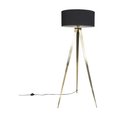 Qazqa Modern Brass Floor lamp with Black Shade Ilse Suitable for LED E27 1 Light Steel Living Room I Bedroom